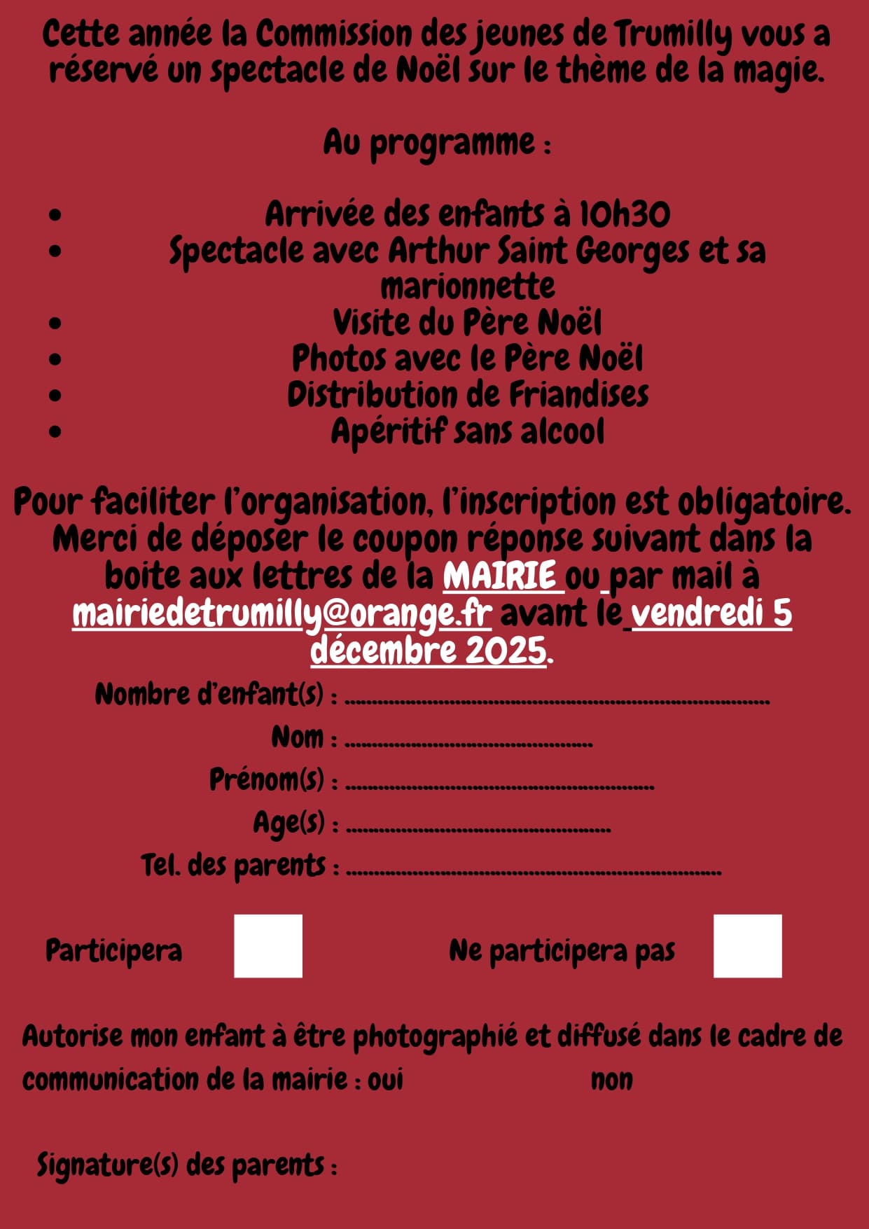 Pour plus d’information : trumillyenfete@gmail.com