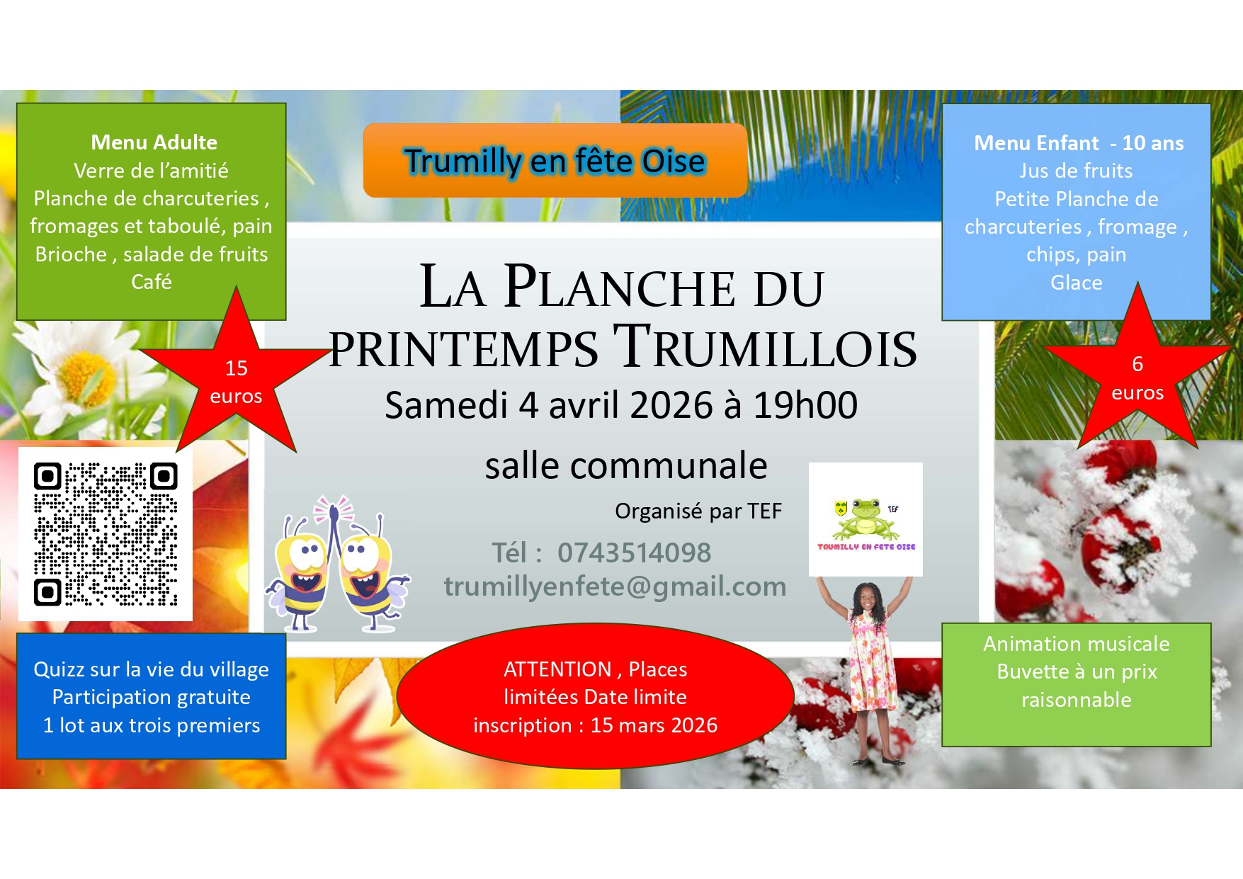 L’association TRUMILLY EN FETE vous propose son programme de manifestations pour le 1er semestre 2026 :